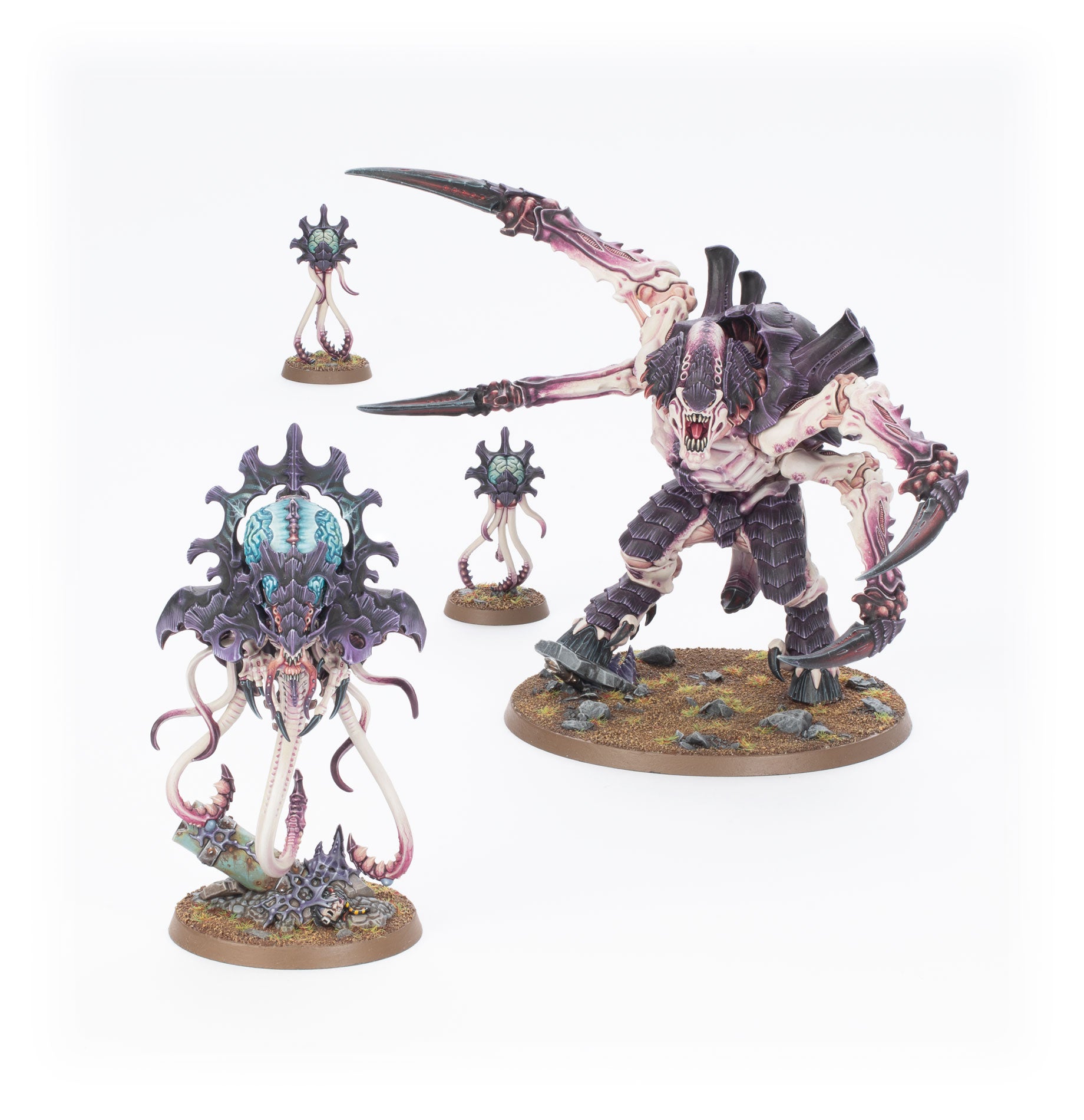 This multipart plastic kit builds a Screamer-Killer and a Neurotyrant, as well as two accompanying Neuroloids. The huge Screamer-Killer rampages into battle with four massive scythe-bladed limbs, protected by an armoured carapace as it spits burning bio-plasma. The Neurotyrant is a strange and sinister creature – its almost vestigial body supports a massive cranium topped by a chitinous crown, allowing it to send psychic signals to the tentacled Neuroloids that serve its monstrous will.